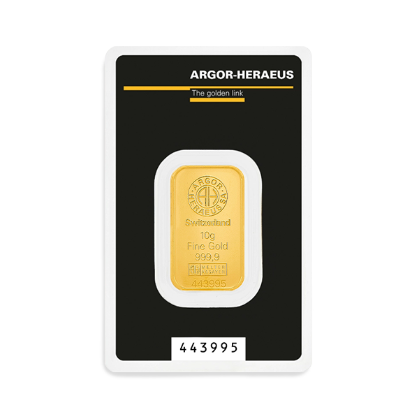 A true symbol of Swiss excellence, the 10 g Argor-Heraeus gold bar combines purity, security, and elegance in an accessible format, appealing to both seasoned investors and newcomers to the precious metals market.