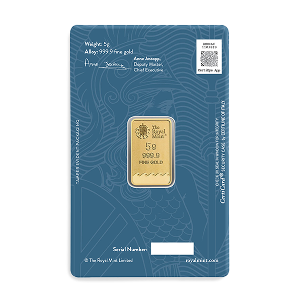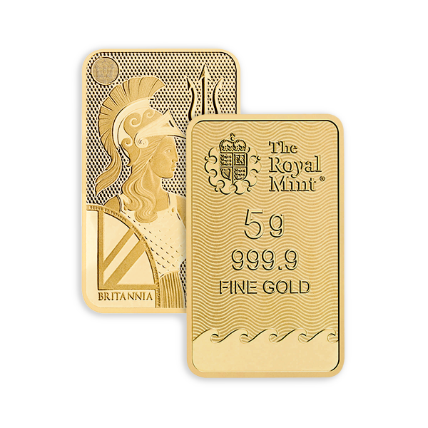 The 5 gram Britannia gold bar from The Royal Mint combines beauty, security, and accessibility.