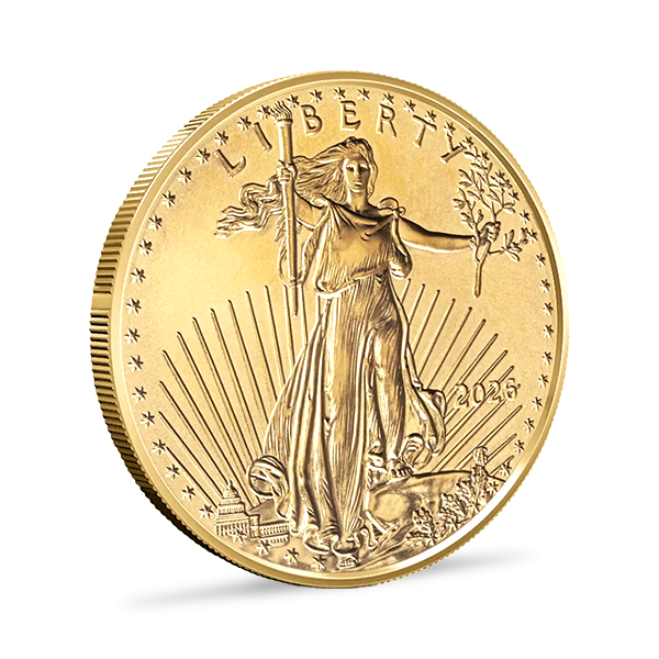 Struck by the United States Mint in 22-carat gold (91.67% pure), the 2026 American Eagle 1/10 ounce gold coin reflects the prestige and enduring traditions of the United States. Valued for its exceptional craftsmanship, iconic imagery, and high gold content, it appeals equally to investors and collectors.