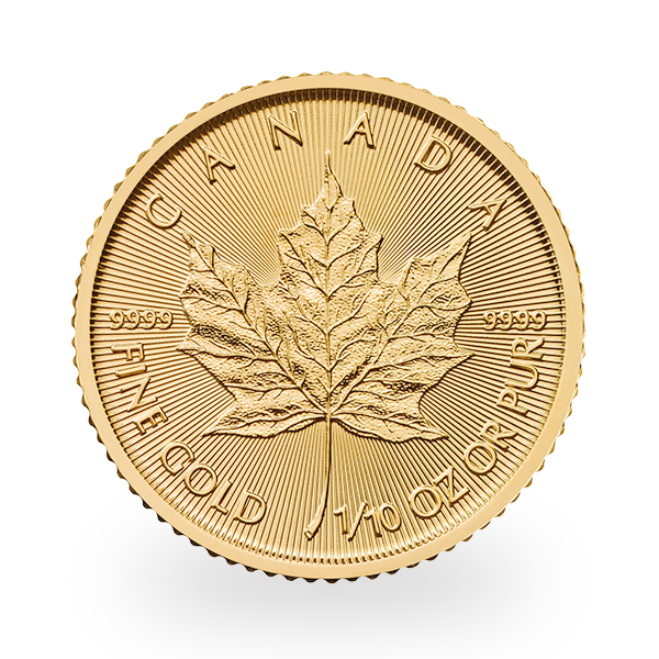 The 1/10 oz Gold Maple Leaf, issued by the Royal Canadian Mint, is a highly sought-after coin admired by collectors and investors around the globe. Struck in 99.99% pure gold, it stands out for its exceptional quality and beautifully crafted design.