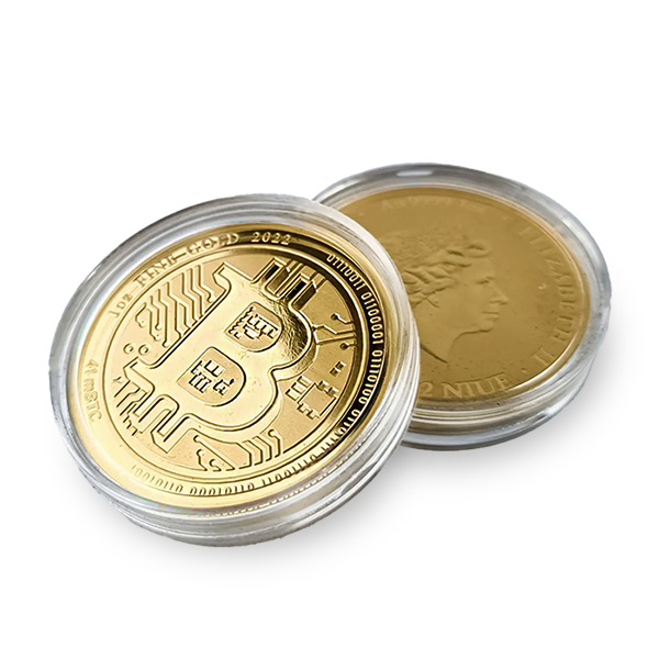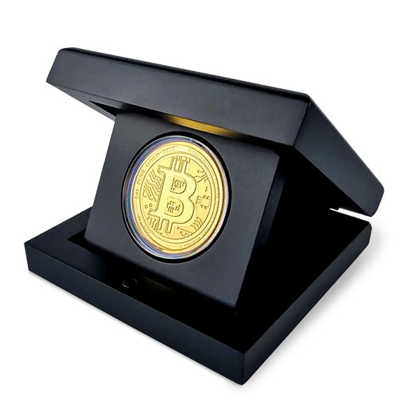 This gold coin serves as a collectible tribute to the Bitcoin concept. While it features exceptionally pure gold, it contains no actual Bitcoin and provides no access to digital assets. Its value lies in its craftsmanship, design, and high gold content.