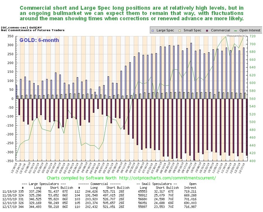 What about the COTs which made us wary in the recent past? The situation requires a rethink given the rapidly changing environment that we are moving into. Whilst we recognize that readings are at levels that normally lead to a significant reaction, the current setup suggests that readings are likely to stay high as this bullmarket progresses, only moderating somewhat on minor corrections, and of course there is nothing to say that Commercial short and Large Spec long positions can’t reach higher levels in the event of gold continuing to advance. So we should be mindful of COT readings and be aware that from now on they are likely to fluctuate around mean levels that are considerably higher than they have been in recent memory.