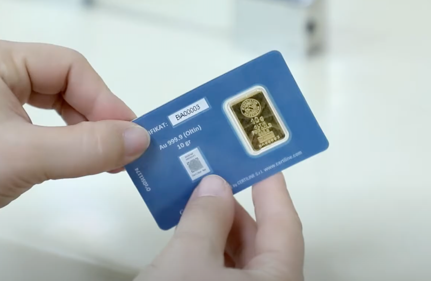 The new gold bars issued by CBU have a special protective packaging, which includes three security layers: a unique serial number, a QR-code for real time digital authenticity verification, and a membrane that changes color when broken.