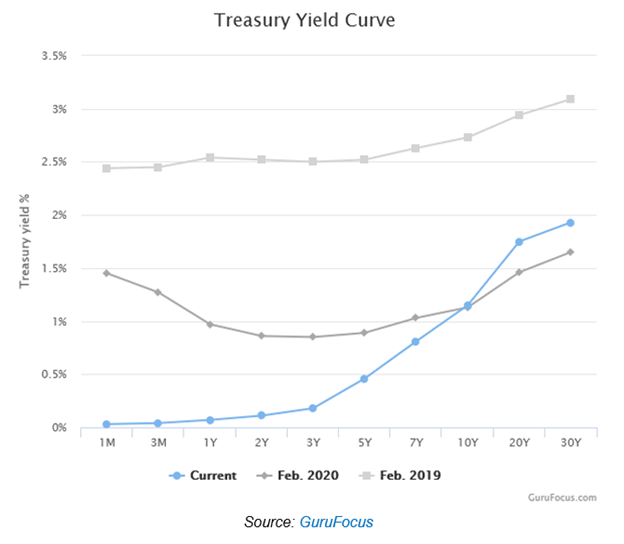 By way of example, consider the yield curve for Uncle Sam’s U.S. Treasury bonds.