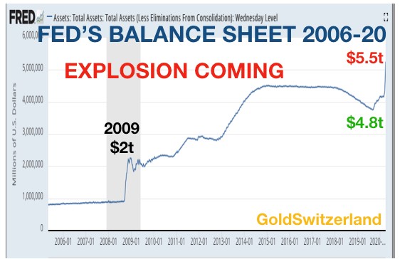 Central banks around the world have so far committed $12 trillion of direct support via money printing. In addition global fiscal stimulus or tax reductions of $5 trillion have been committed by governments. But these amounts are just a drop in the ocean. Just take a company like Volkswagen. They are now experiencing a cash drain of $2.2 billion per week. If we multiply that by factories and businesses around the world plus assistance to individuals, we will soon see liquidity requirements of $10s followed by $100s of trillions as the financial system implodes.