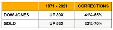 During the last 50 years we have seen 5 vicious corrections in the Dow of between 41% and 55%.