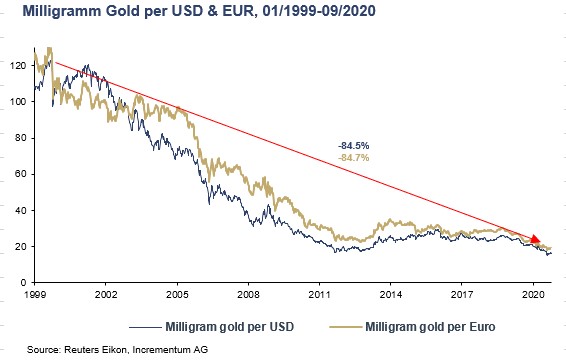 As currencies die, gold rises as a store of value to the tune of greater than 80% since 2000.