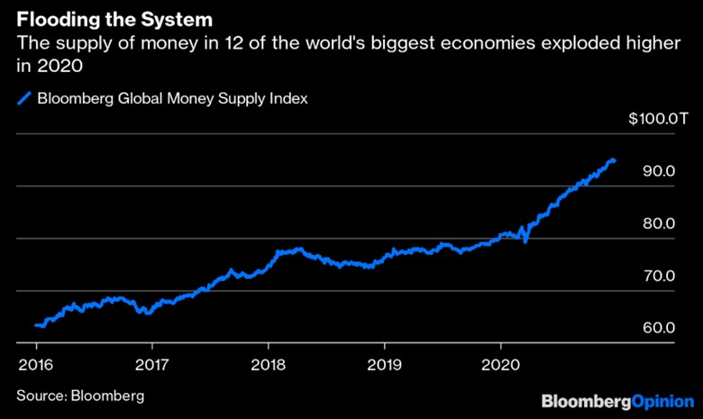 Taking this metaphor further, the amount of fiat currencies created in 2020 has made even the savviest of investors look a bit silly, like a casino of James Bonds drinking vodka from an embarrassing fire hose rather than suavely debating the merits of shaken vs. stirred.
