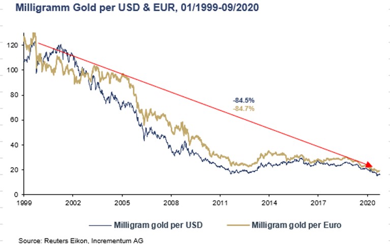 Physical gold, as a timeless (rather than trendy or passẻ) instrument of wealth preservation, serves as the historically-confirmed and surest way to ensure one’s wealth against the ravages of currency debasement.