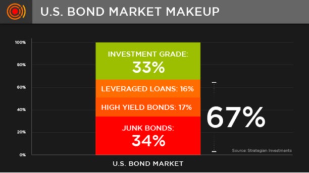 These zombies, however, are just one member of an over-all embarrassing club of U.S. corporate bond issuers, 67% of which are rated at or just a pinch above junk, high yield or levered loan status—namely the very bottom of the credit barrel.