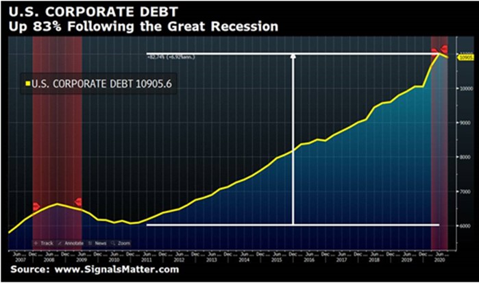 But when not issuing IOU’s to stay alive, many of those same enterprises are passively riding a stock market wave above jagged rocks of broken balance sheets hidden just beneath the waterline.