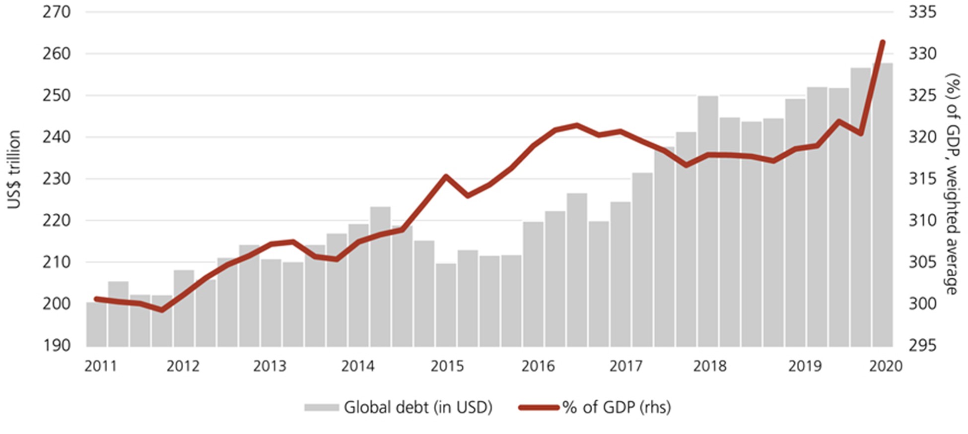 As global debt (and debt/GDP percentages) goes this way (UBS graph)…