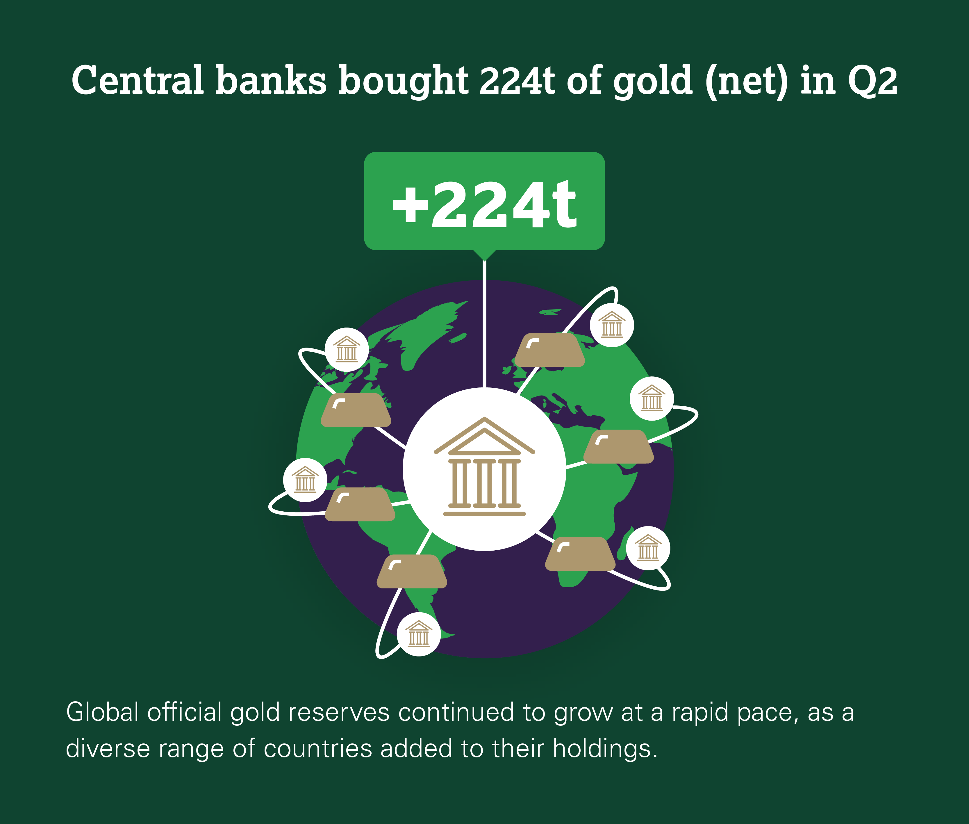 Gold demand was 1,123t in Q2, up 8% y-o-y. H1 demand jumped to a three-year high of 2,181.7t, largely due to record-breaking central bank purchases.