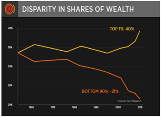 As this familiar graph reminds us, the only real beneficiaries of our totally drunken and fake “recovery” since 2009 have been the wealthy, not the rest of America.