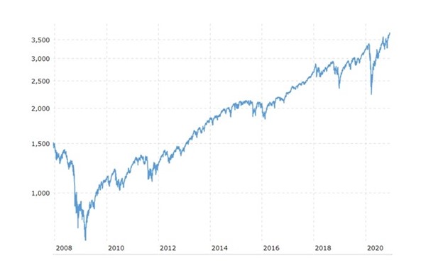 Thus, if you want to see where inflation shines brightest, just look at the grossly inflated S&P since 2008.