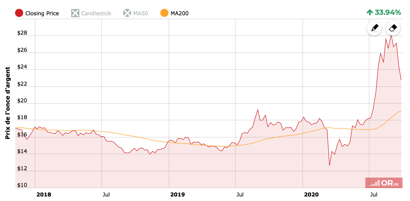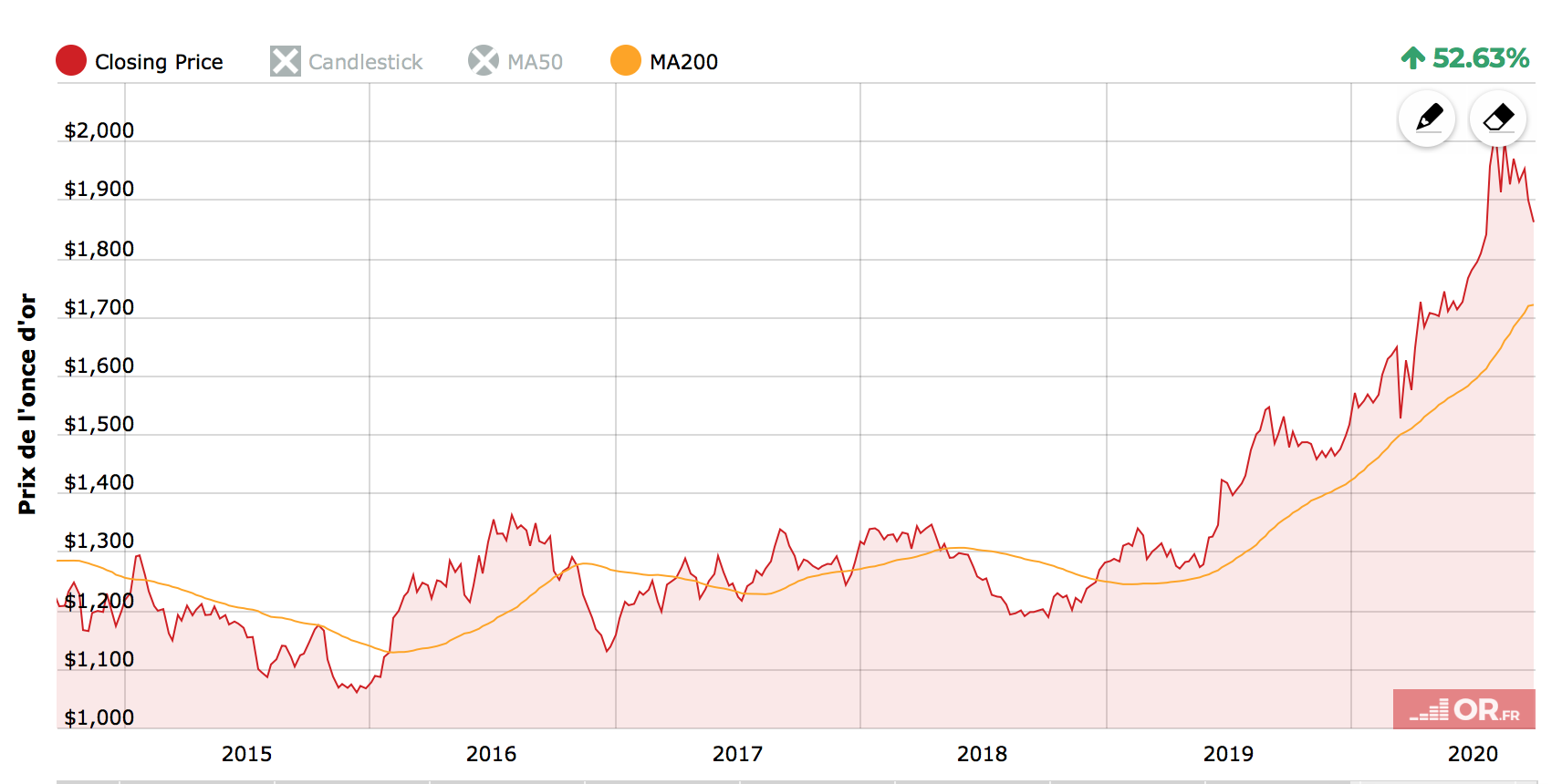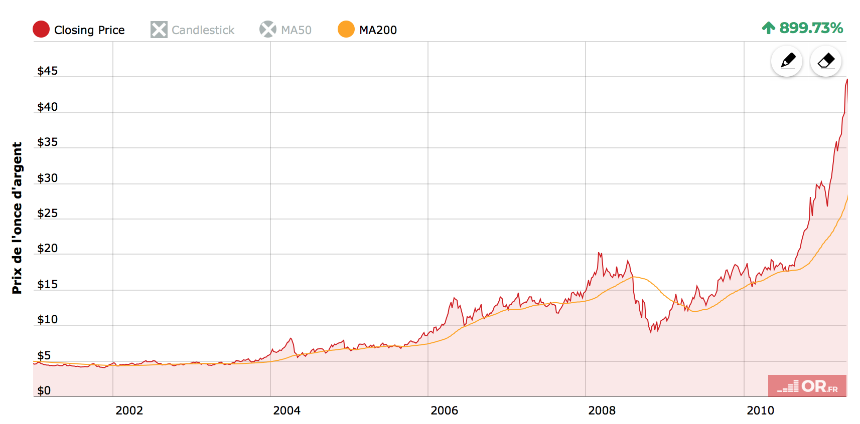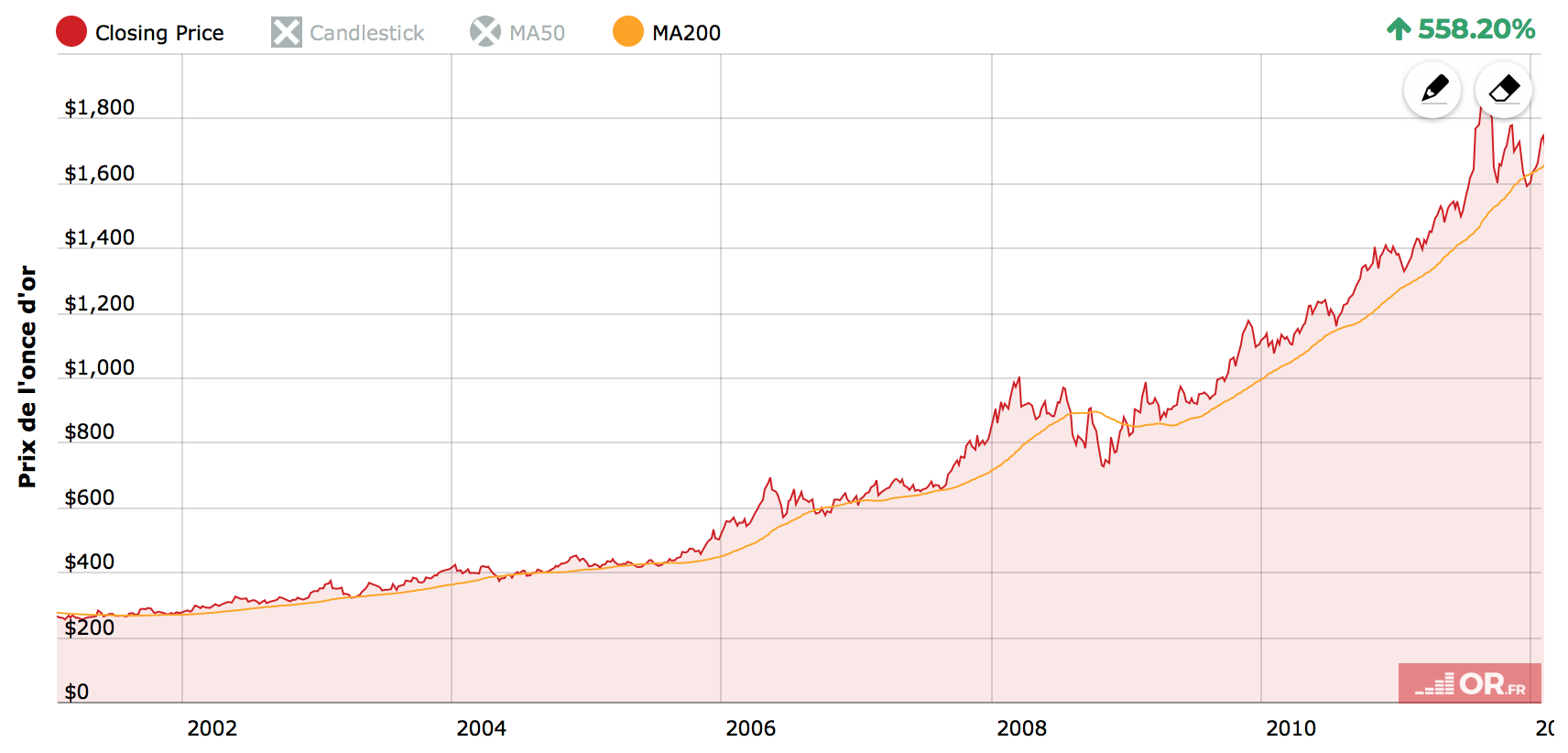 These corrections did not prevent gold and silver from achieving a performance of +558% and +899%, respectively, over this period.