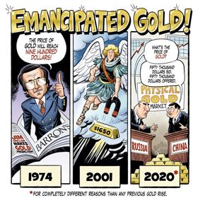 The individual who knows gold better than anyone living today is Mr Gold, Jim Sinclair. He has accurately predicted the gold market for 1/2 century. What Jim calls Emancipated Gold will reach $50,000 by 2025 according to his forecast. (see cartoon below from JSMineset.com) I believe this is similar to Freegold which I wrote about in Dec 2018. Freegold is physical gold free from official money systems, owned free of all other claims and freely traded.