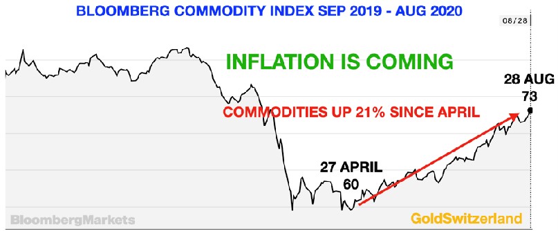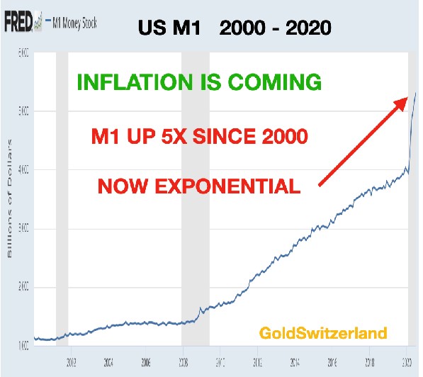 All these chiefs are singing from the same hymn sheet. Their language is veiled which is the normal central bank speak. This is not a question of tolerating high inflation. Inflation is already here but the way it is conventionally measured hasn’t yet shown up in prices. But the central bank (CB) heads know what is next. It is inevitable that the 30% or $6 trillion increase in CB assets this year will have a major inflationary effect.