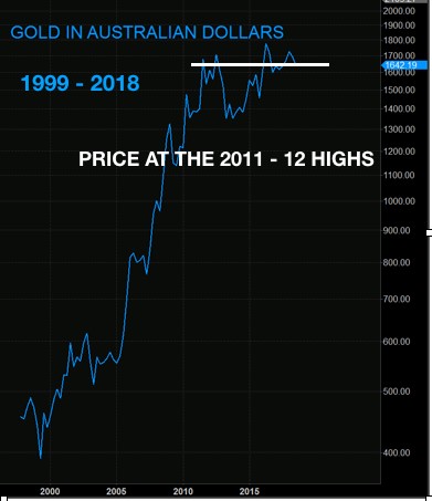 Looking at gold in other currencies like the Australian dollar the price is around the 2011-12 top.