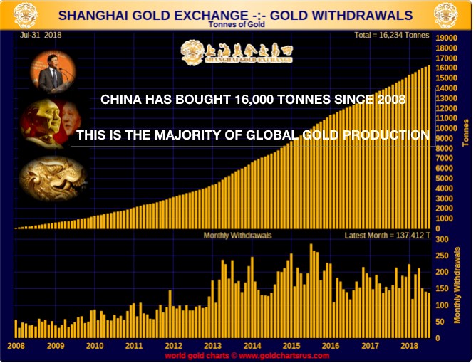 As the West has overtly and covertly reduced its gold holdings, the East is continuing to add as much as they can at these bargain prices. Most central banks have either sold or leased a major part of their gold to the market. This gold is then bought by China, India or Russia through the bullion banks. These Eastern countries obviously take physical delivery rather than leaving the gold in London or New York. When you own gold, you must have direct control.