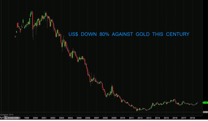 We must remember that measured in real terms, which is gold, the dollar is down over 98% since the Fed was created in 1913 and down 80% since 1999. So the dollar is already on its way to perdition but the next phase will happen faster than anyone can imagine.