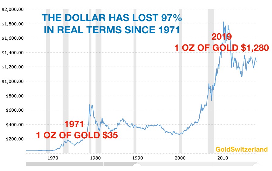I was fortunate to learn early what could happen to a country’s economy. Times were hard but there was no depression and most people had a job. What we must remember is that in August 1971 Nixon took away the gold backing of the dollar and that opened the floodgates for the credit creation and money printing that we are now in the final stages of. Gold’s massive surge in the 70s was primarily caused by double digit inflation and currency debasement.