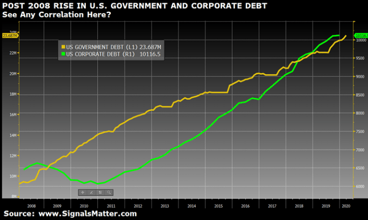 U.S. Government and Corporate Debt simply skyrocketed, as did the stock market.