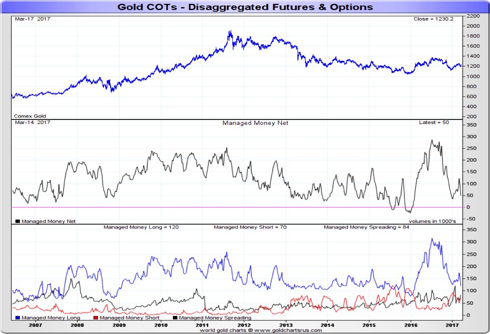 In terms of positioning, Comex gold prices came under pressure in the run up to the Fed as money managers reduced exposure ahead of the decision. In the week from March 8th to March 14th, open interest in futures and options dropped by more than 44k. The net long position fell to just below 50k for the first time since January, compared to an average of over 120k contracts since June 2006 and the Brexit-induced record of nearly 287k set last July.