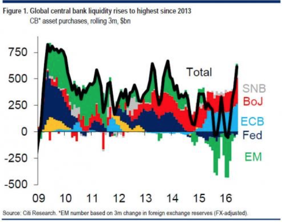 The artificial support of asset markets by central banks is now leading to biggest expansion of their balance sheets since 2013. Both the BoJ and ECB are now growing faster than any time in the last seven years. No central bank worries about the fact that they are buying worthless assets and therefore will never repay their borrowings.