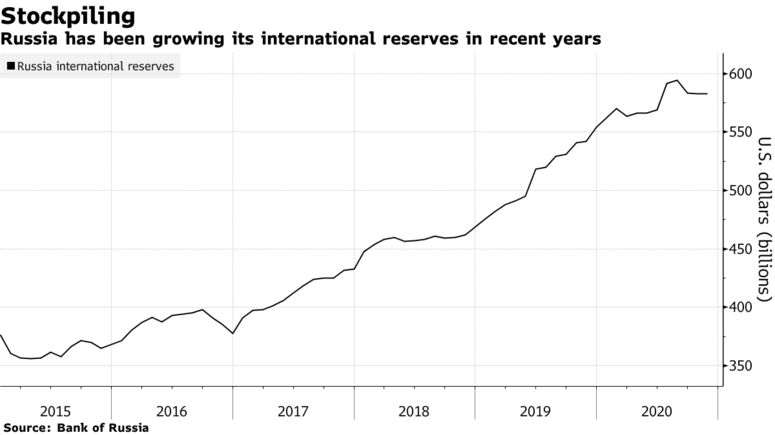 The increase in Russia’s gold reserves was aided by a 26% surge in prices between June 2019 and June 2020. The central bank also bought $4.3 billion worth of the precious metal over the period, according to the report.