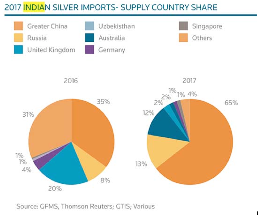Indian industry (which includes jewelery) only needs 2,667 tonnes. The average surplus of 2,700 tons since 2011 has been imported by six banks and eight agencies, as you can see in the World Silver Survey 2017.