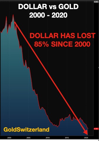 Only in this century, the dollar has lost 85% against real money or gold. There is no better proof of the total failure of the policies of the Fed and other CBs than the destruction of the currencies.