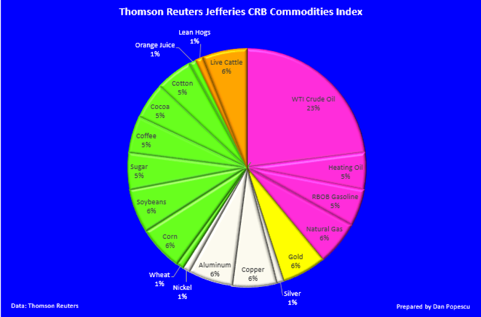 The next set of charts shows the distortion created in the price of commodities going from food like wheat and corn to industrial commodities like crude oil and gasoline. The Thomson Reuters CRB Commodity Index is an index of the most important commodities used.