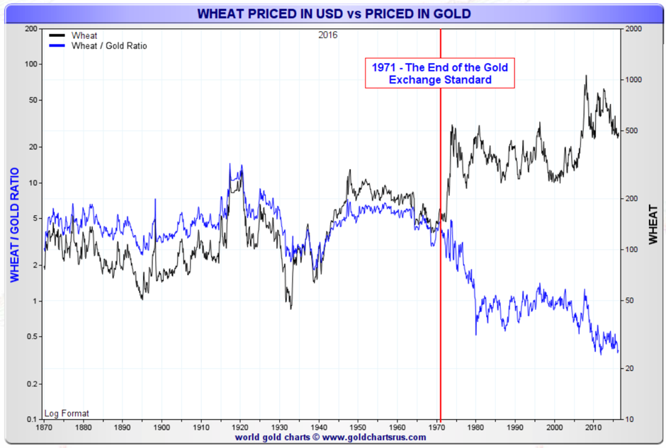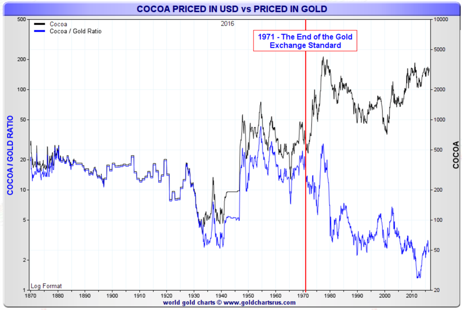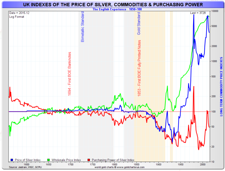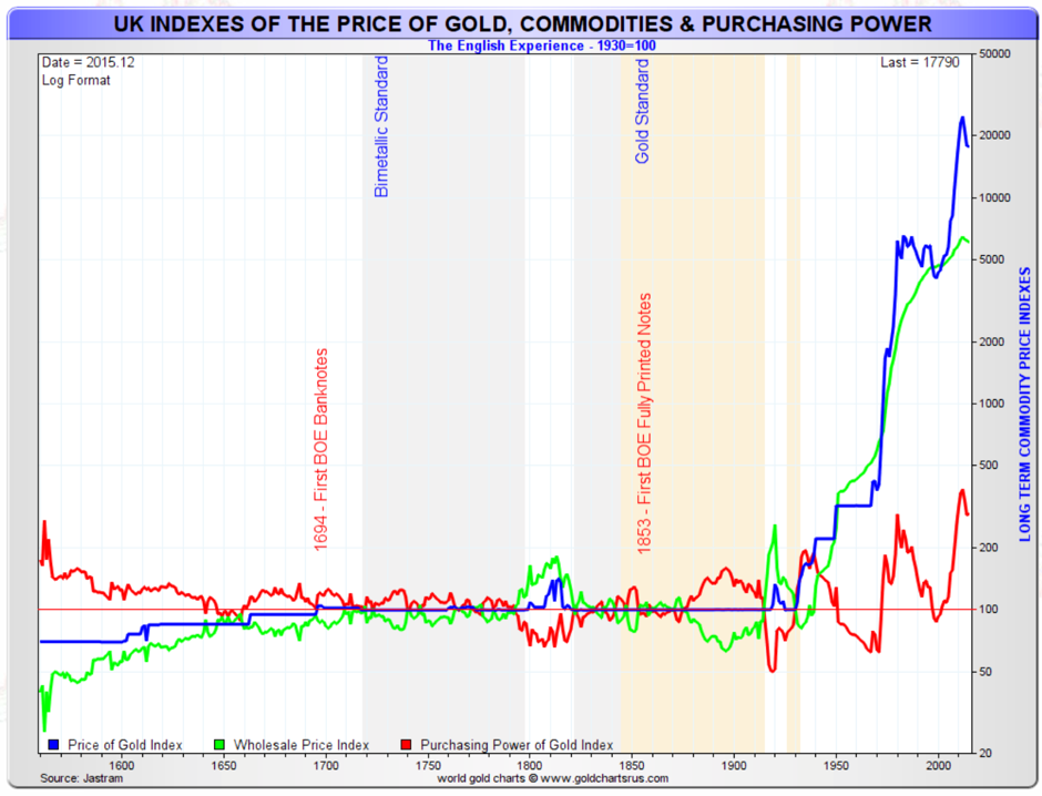 In Roy Jastram’s gold and silver charts below, we can also see the effect of inflation on the volatility of real assets since paper and electronic currency was introduced around 1900. (The Golden Constant & Silver: The Restless Metal, Roy W. Jastram).