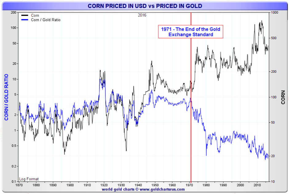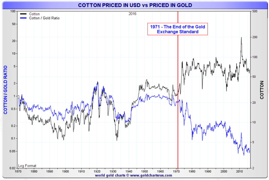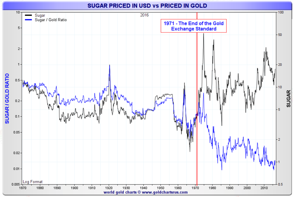 Keynes’ citation of Lenin and Buffett’s story explain perfectly why governments love inflation so much and hate gold or, more generally, hard assets. Inflation creates an illusion of unending uptrend in the value of assets. It also allows the state to tax without the people realizing it. If you price something in fiat (paper, electronic) currency, you can certainly believe prices always go up with just minor corrections. But if you price something in real currency such as gold, the picture changes totally. This is the illusion of inflation.
