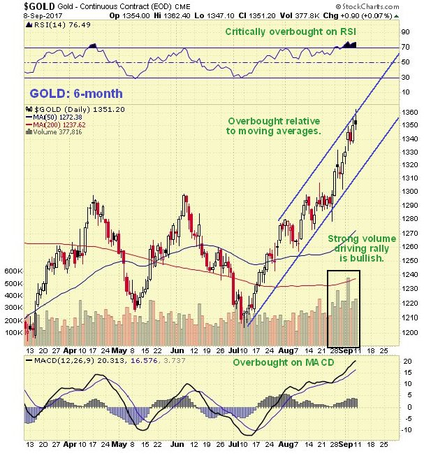 Conclusion: the long-term outlook for gold couldn’t be better with it looking destined to break out from a giant 4-year long base pattern to enter a bullmarket that promises to dwarf the last one, as the dollar collapses and China (and possibly Russia and other countries) backs its currency with gold, and the cryptocurrency Ponzi scheme implodes, with the liberated funds (or what’s left of them) flowing into gold and silver. Cryptos got a shock late last week when China reportedly revealed that it was set to close local exchanges. From China’s standpoint cryptos are a needless risk to their citizen’s capital, and represent potential competition for their future gold-backed Yuan, albeit not for any intelligent person, and are a nuisance that they can deal with simply by banning them, which as a Command Economy that can ignore criticism, they have the power to do. Near-term gold is looking set to react back as the dollar bounces off support with tensions over N Korea easing as the US has no choice but to accept that N Korea has graduated to the nuclear club, even if it cannot be described as one of its august members.