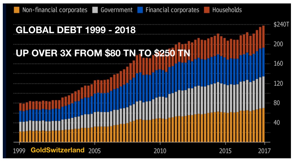 The problem is simple to define and is all based around debts and liabilities. At the beginning of this century, global debt was $80 trillion. When the Great Financial Crisis started in 2006, global debt had gone up by 56% to $125 trillion. Today it is $250 trillion.