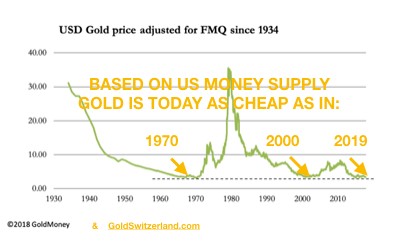 Gold is today as cheap as it was in 1970 at $35 and in 2000 at $270: