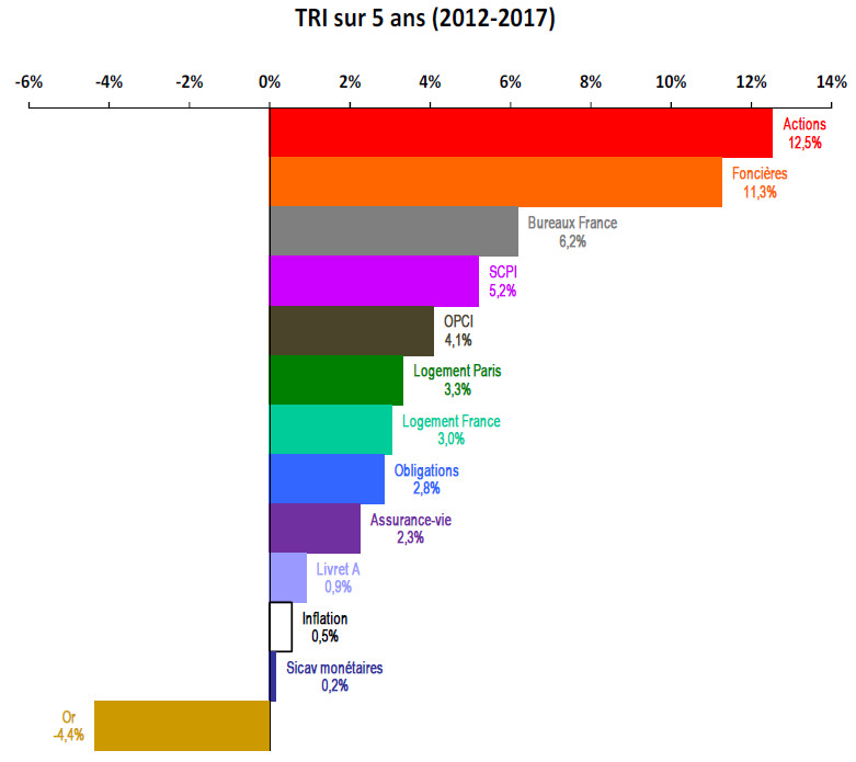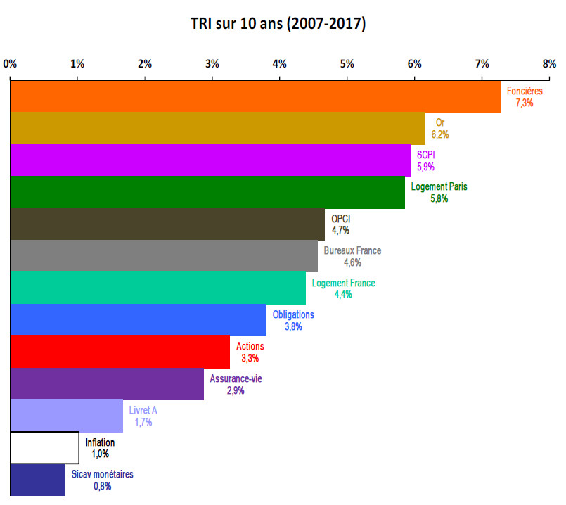 The study is particularly interesting for wealth management advisors who have clients residing in France. As a matter of fact, it is one of the only regular publications that compare gold in euro (not in dollars) with other asset classes of the national market, whether it be stock, bonds, monetary investments, but mainly asset classes that have national real estate as underlying assets.