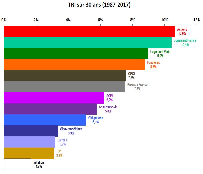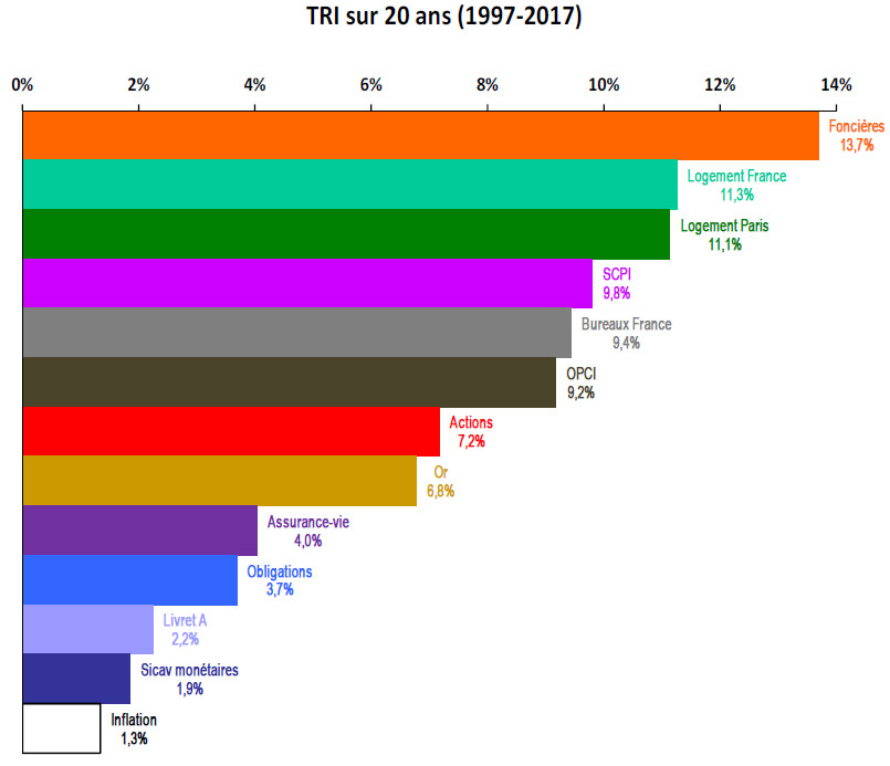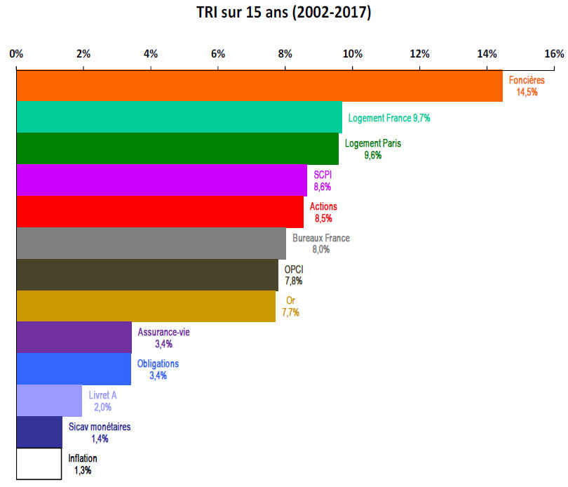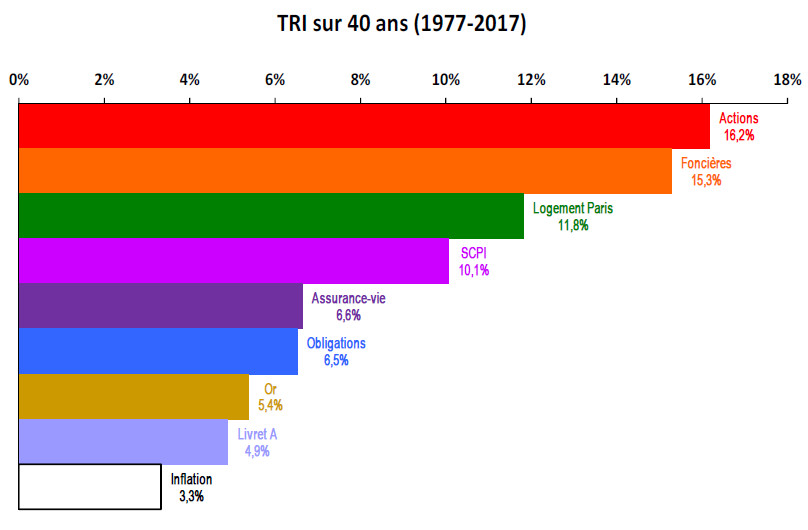 This is what Charles-Henri de Marignan, a real estate analyst with the Institut de l’épargne immobilière et foncière (IEIF) has studied. He publishes an annual report titled (transl.) ’40 years of performance comparison: Long-term investments: Real estate, monetary investments, life insurance, bonds, stock market shares, and gold’, and the last one was published mid-June.