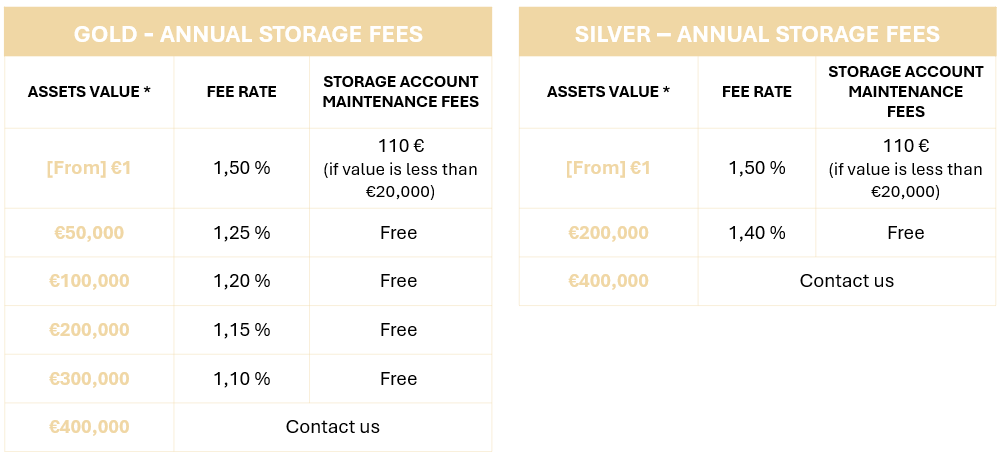 Purchasing costs: sales prices shown on our products include GoldBroker’s commission. Commissions vary from one product to another and are degressive with larger quantities ordered.
